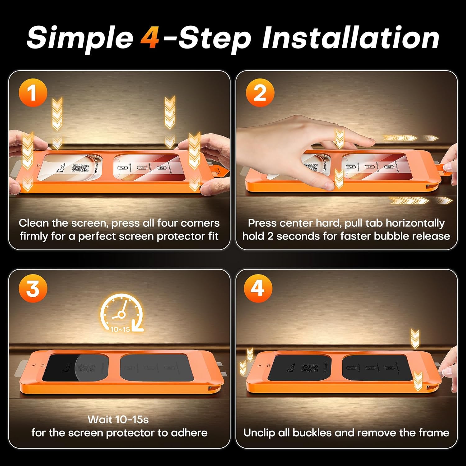 • Revolutionary Innovative Auto Installation: Features auto-align positioning with dust removal and instant adhesion technology. Just place, press and pull - installs perfectly in seconds